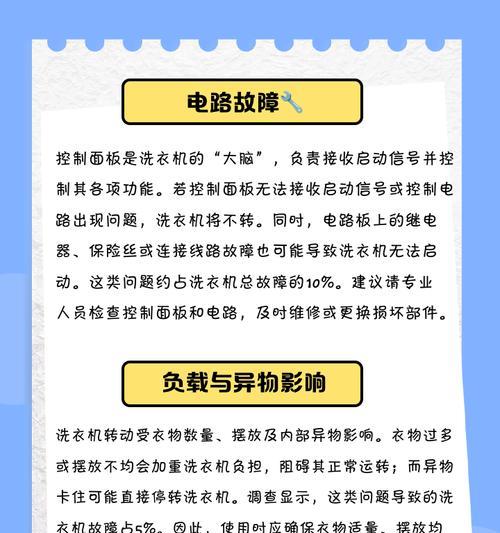 随着科技的不断进步,洗衣机已经成为我们生活中必不可少的家电之一。然而,使用过程中难免会遇到一些问题。小霸王洗衣机不转动便是其中之一。本文将介绍小霸王洗衣机不转动的常见原因,并提供解决方法,希望能帮助到遇到类似问题的用户。